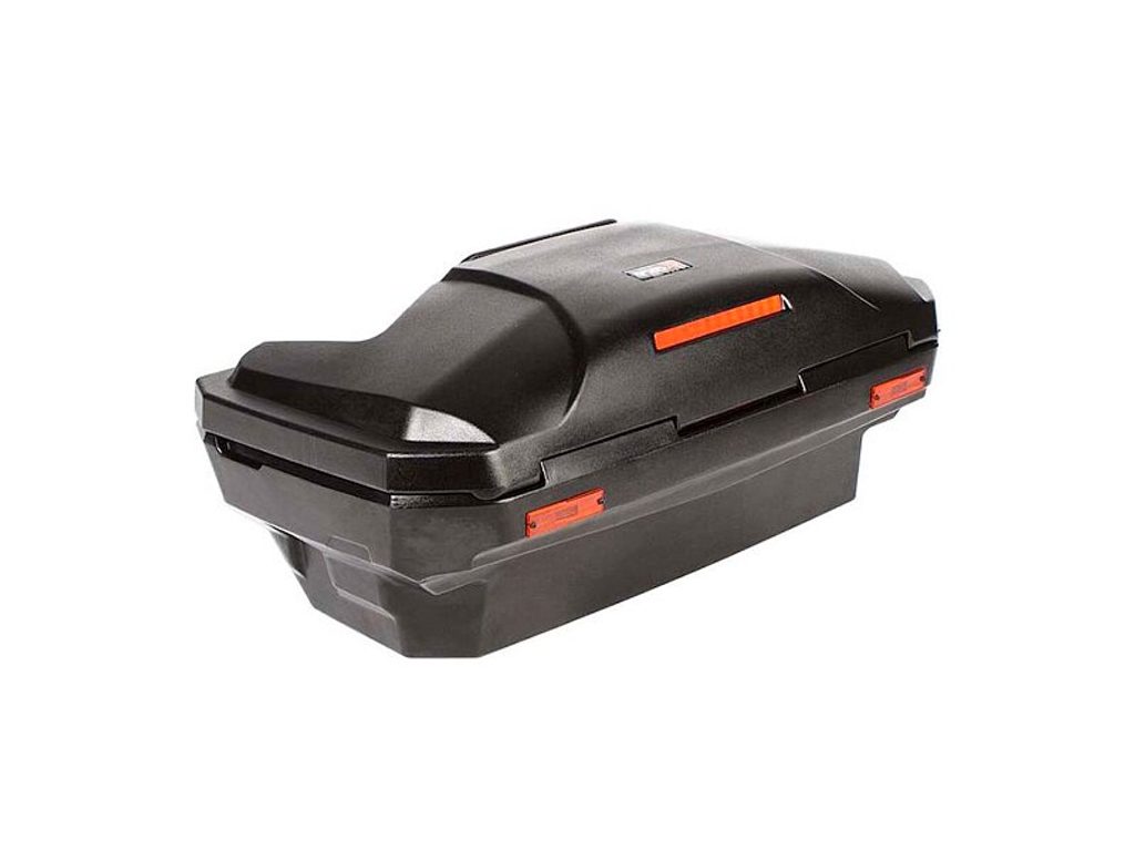 Univerzálnbí objemný box s rovným dnem, zádovou opěrkou, pravidelným tvarem a velkým vstupním otvorem. - Vhodný pro většinu vyráběných čtyřkolek - Pevné dvouvrstvé stěny - Gumové těsnění chrání zavazadla proti vlhkosti a nečistotám - Uzamykatelný díky dvěma hliníkovým zámkům - Červené odrazky pro větší bezpečnost - Univerzální montážní sada (U-spony)