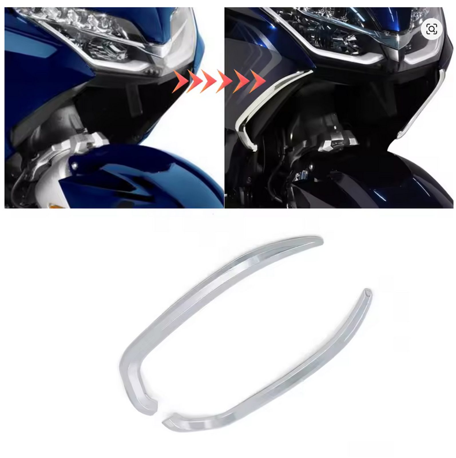 Chromové samolepící lemy na kapotáž pod hlavní světla na Honda GL1800 2018 2019 2020 2021 2022