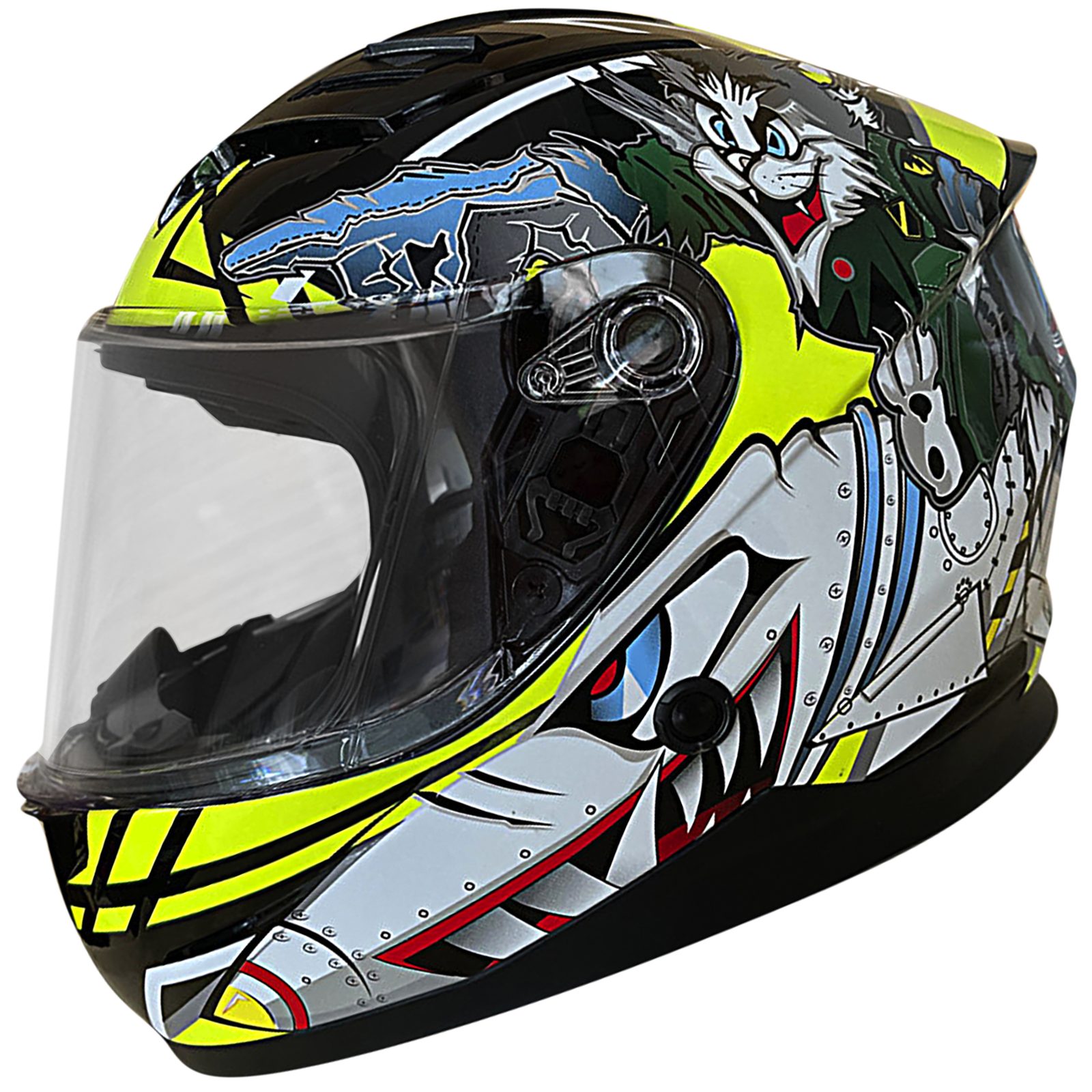 Vlastnosti prodyšná, vyjímatelná a pratelná komfortní vnitřní podšívka nastavitelná ventilace brady a hlavy, odvětrávání, Deflektory větru a dechu, ráčnové zapínání, UV ochranný lak, ECE-22/05. Materiál ABS plast. Hledí Průhledné, odolné proti poškrábání, rychlá výměna hledí bez použití nářadí, Váha cca 1250 g.