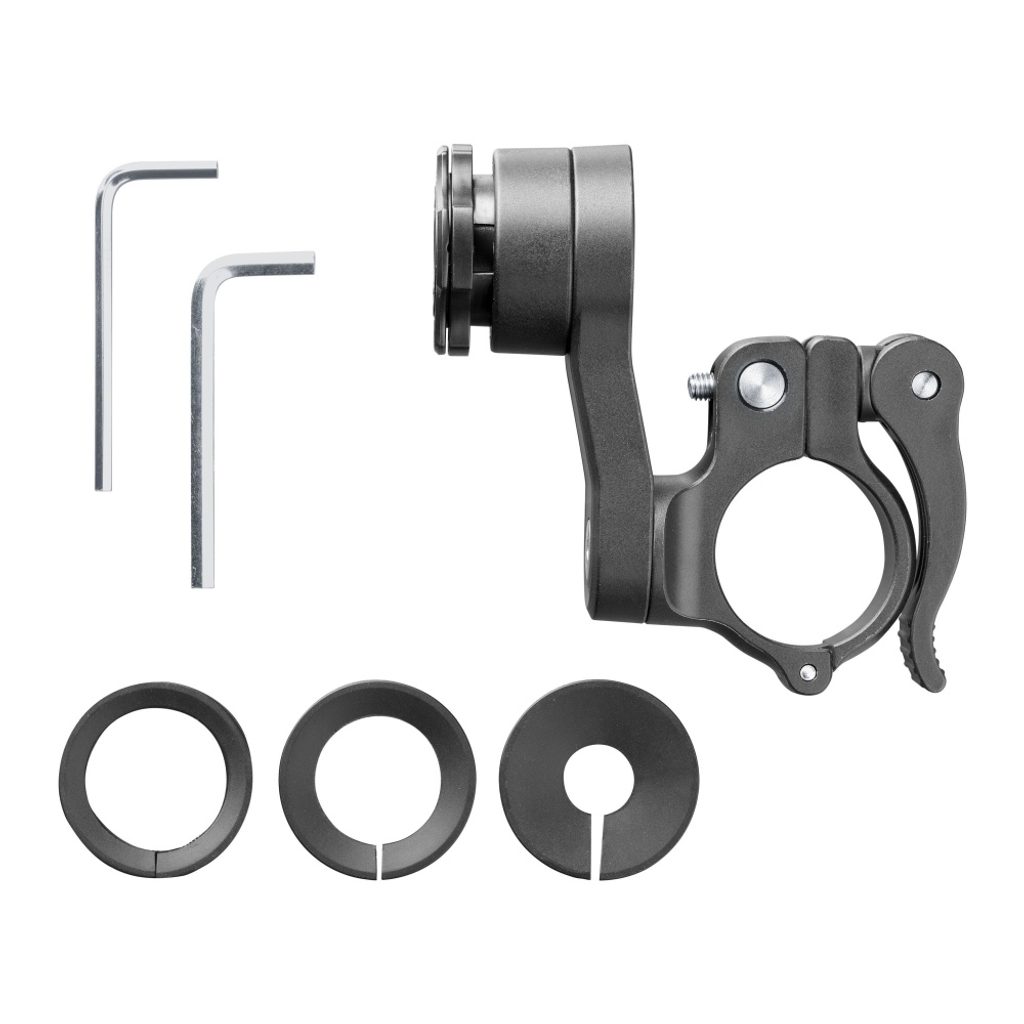 Držák Interphone QUIKLOX s novým rychloupínacím systémem, který vám umožní mít váš mobilní telefon stále s sebou. Jedná se o univerzální držák vhodný pro tubulární řídítka, přizpůsobí se různému průměru. Hlavice držáku je vybavena speciálním systémem QUIKLOX. Ten funguje ve spolupráci s adhezivní základnou SMQUIKLOXPAD, která se instaluje na záda telefonu. Po přiložení k držáku telefonem jednoduše pootočíte a zajistí se tak pevně k držáku. Stejně rychle pak telefon po skončení jízdy odepnete. Sklon ramene držáku si můžete upravit podle potřeby.