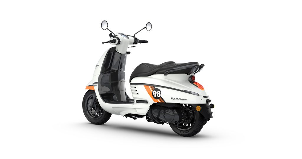 Stylový skútr Peugeot Django se nabízí v několika barevných variantách. Dvoubarevné provedení patří ke stálicím nabídky. Standardní verzi každým rokem doplňují speciální edice, které dokáží zaujmout svojí neotřelou barevnou kombinací a dodávají Djangu svěží vzhled a pořádnou dávku sexappealu.