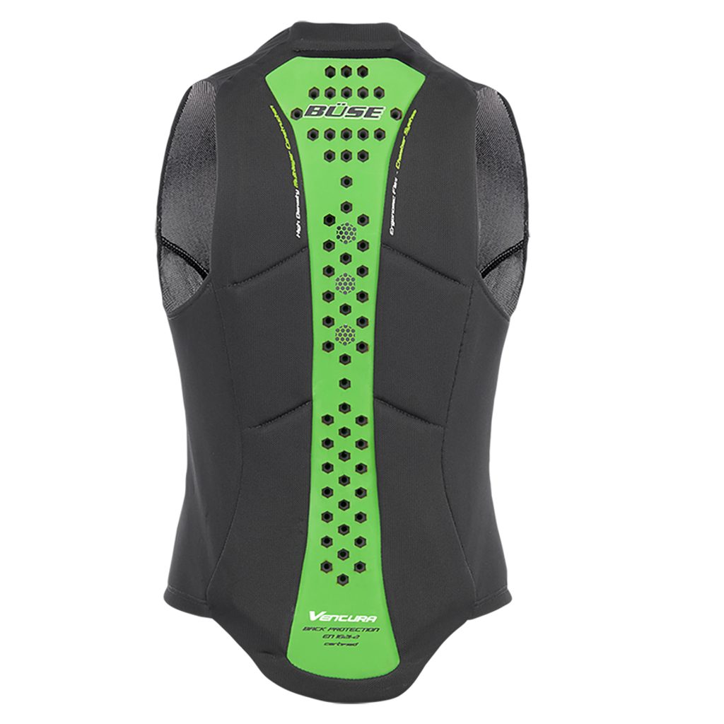 testovaný chránič zad podle normy EN 1621-2 úrovně 2 vyrobený z vícevrstvé, viskoelastické a pohlcující pěnové hmoty,