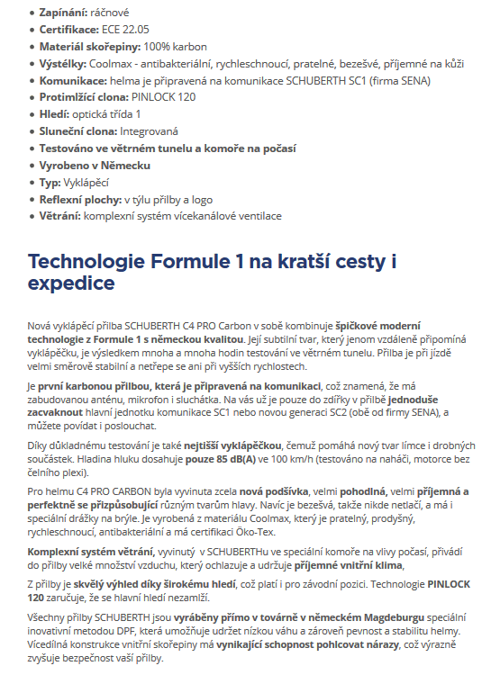 Vyklápěcí přilba / SCHUBERTH C4 Pro - Carbon Fusion yellow
