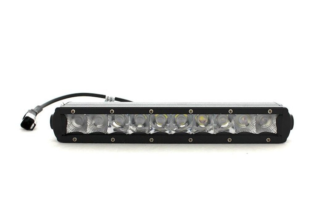 Jednořadá světelná rampa, dva typy čoček pro soustředěný světelný paprsek zajišťující výborné osvětlení prostoru před strojem a zároveň pro osvětlení širšího prostoru. - 10x LED čip CREE 5W, 4D čočky - Pracovní napětí 9 - 60V DC - Teplota světla 6000 K - Krytí IP 68 - Hliníkové pouzdro s chladičem